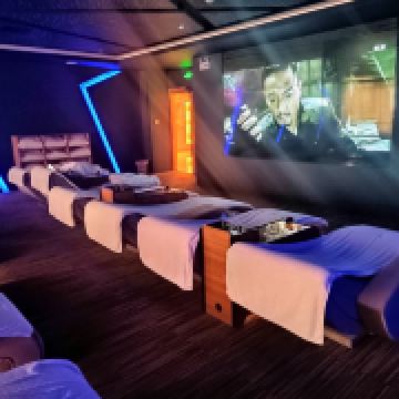 三楼,是休息区,有餐厅可以吃饭,沙发床休息室可以看电影,还有专业的足疗区。