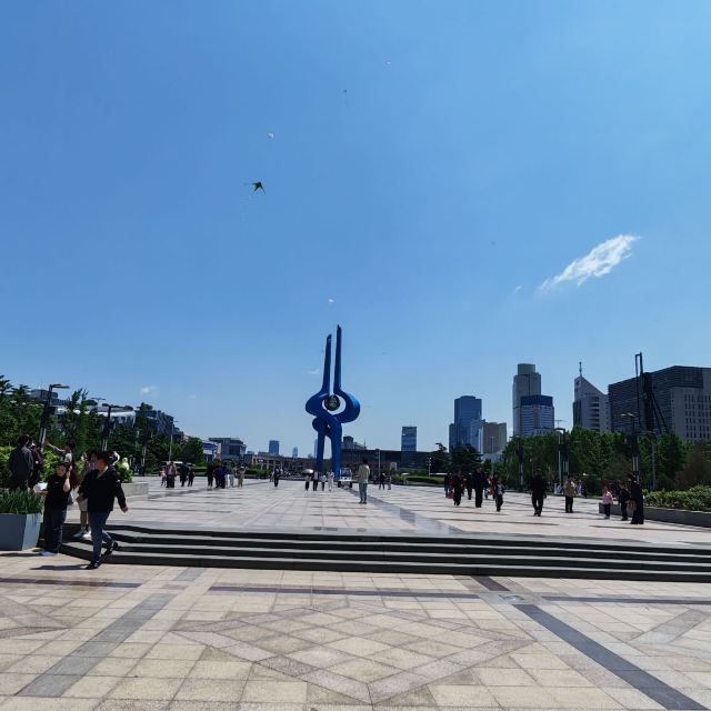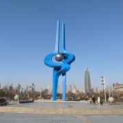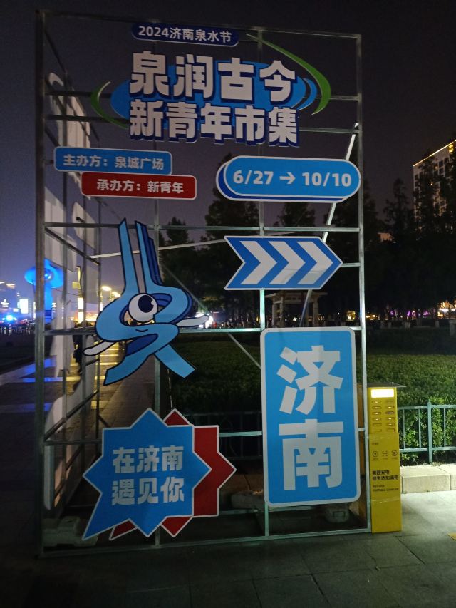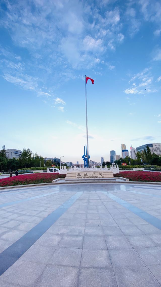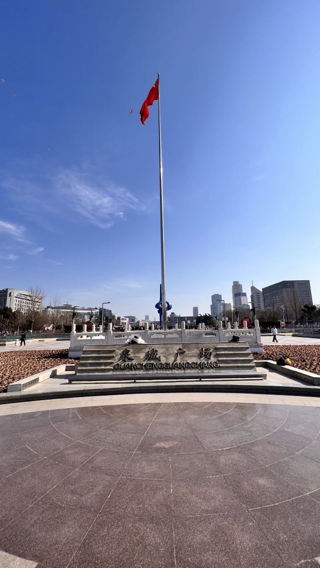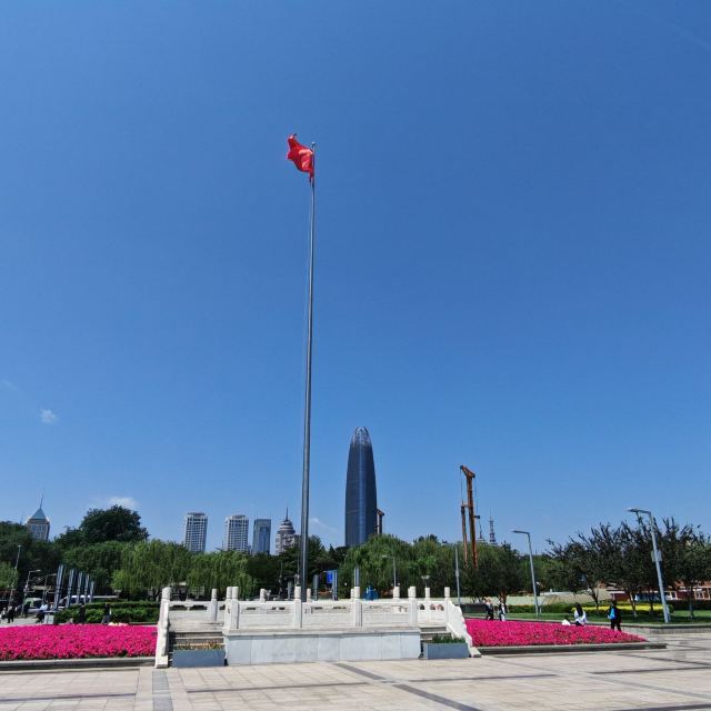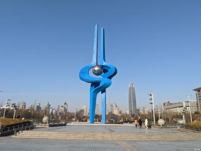 泉城是济南的别名,整个广场的设计紧扣“泉”这一主题,南北两侧是狭长的绿化带,正中间坐落着泉标,蓝色高耸的钢制雕塑和中间的铁珠构成了篆书“泉”字的造型,你可以合影留念。东端的山东省科技馆适合带小孩的游客一游,孩子在里面能学到很多科普知识。广场上常能看见在此休闲娱乐的当地市民,喂鸽子、放风筝、溜旱冰,到了傍晚市民更多,愈发热闹。