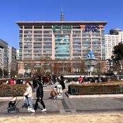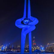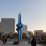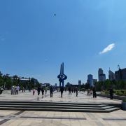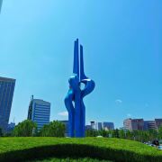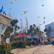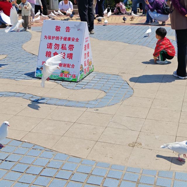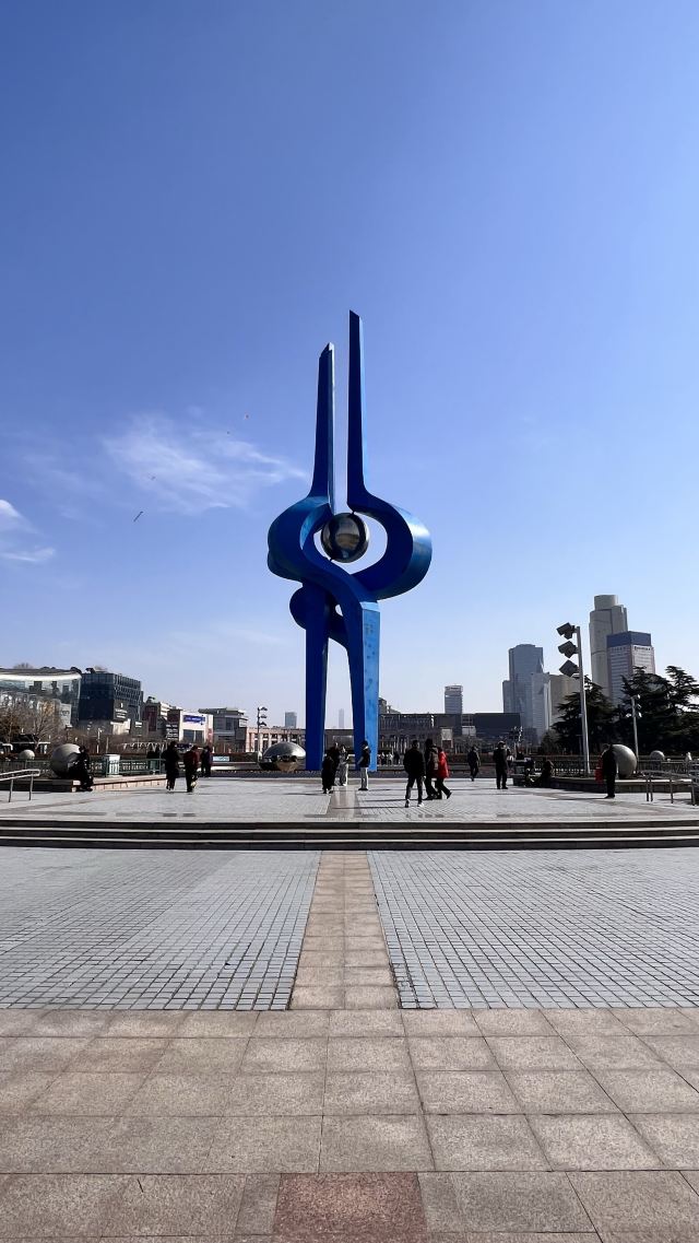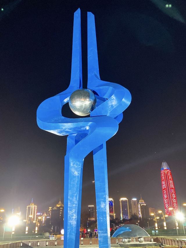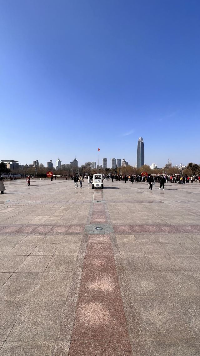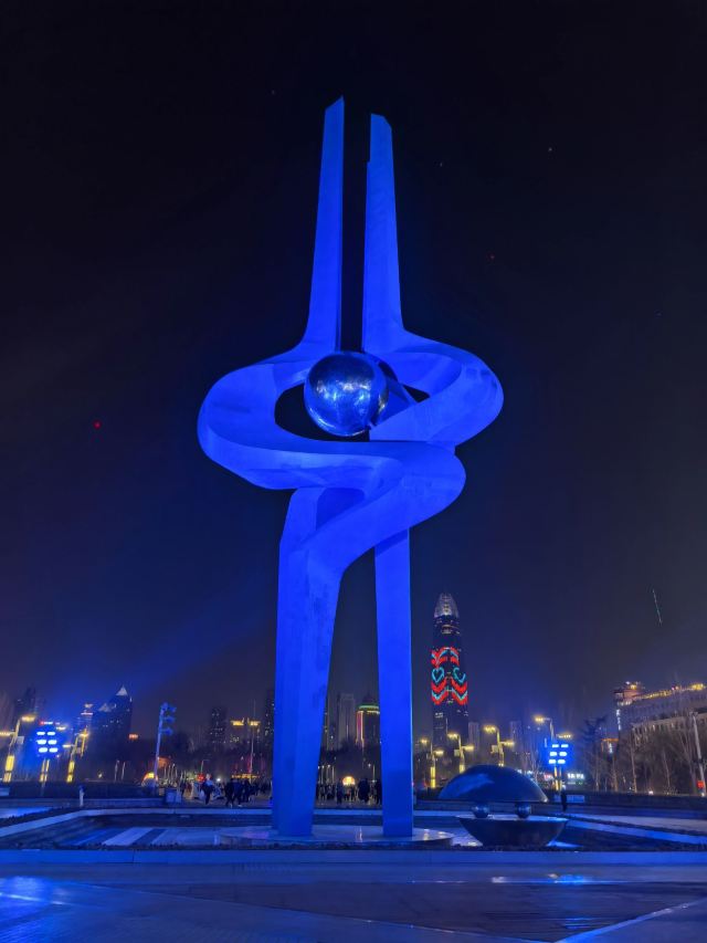 泉城是济南的别名,整个广场的设计紧扣“泉”这一主题,南北两侧是狭长的绿化带,正中间坐落着泉标,蓝色高耸的钢制雕塑和中间的铁珠构成了篆书“泉”字的造型,你可以合影留念。东端的山东省科技馆适合带小孩的游客一游,孩子在里面能学到很多科普知识。广场上常能看见在此休闲娱乐的当地市民,喂鸽子、放风筝、溜旱冰,到了傍晚市民更多,愈发热闹。