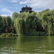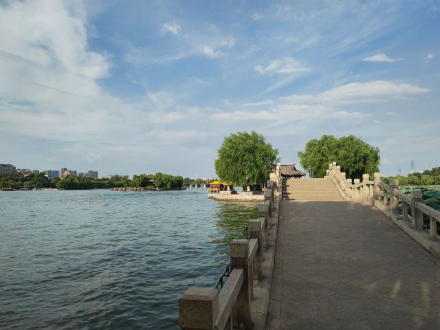 沿着北边紧贴广场的护城河散散步也是不错的选择,东端还有泉城广场游船站,可以坐游船欣赏护城河风光。护城河游船共设10站:黑虎泉站、泉城广场站、趵突泉站、五龙潭站、大明湖西南门站、大明湖稼轩祠站、司家码头站、超然楼站、知春桥站、青龙桥站,每人每站次10元,全程100元。