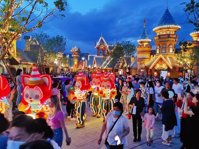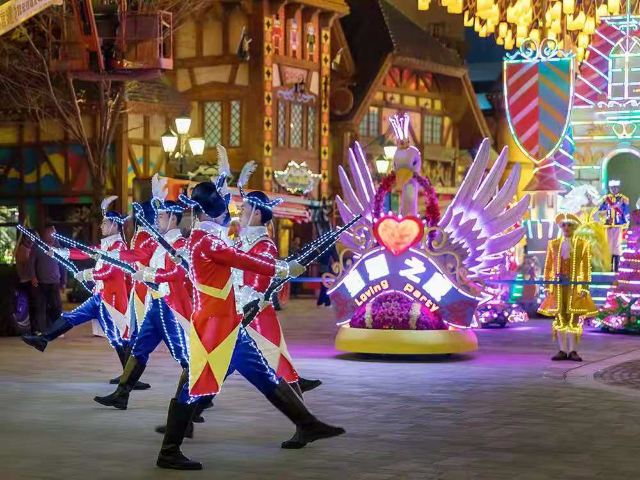 融创白天是免费入园,园区下午有真爱之旅的花车游行,对于孩子们来说,公主王子还有花仙子们的一个招手一个比心都能让孩子们开心好几天,我闺女就因为小仙子的击掌,高兴的像中了大奖似的,一个劲的和我说她今天好幸运。花车巡游每天两场,下午3-4点,晚上一场8点多。具体入园之前在游客中心问一下。