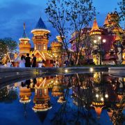 济南融创乐园占地43万㎡,作为开放式主题乐园,以欧式风格为主题,设计了魔法小镇、冒险港湾、精灵森林、小矮人农庄四大沉浸主题区域,30多台游乐设备为游客创造非同凡响的欢乐体验。游客既可以穿越到未知神奇的魔法小镇,也可以在充满地中海风格的冒险港湾开启与海盗对决的冒险,在晚上去精灵森林邂逅可爱动物和去萌宠聚集的矮人农庄享受不同于都市的田园风光。