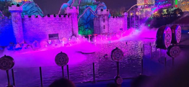 魔法秘境和飞跃丝路,都是那种影像交互式的,飞跃丝路排队时间比较长。