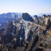 从太古代到新生代复杂的演化史, 形成了太行山“雄、奇、秀、险、幽”的喀斯特地貌景观, 千沟万壑间穿插着兀起的石峰, 登临远眺,“奇”不只体现在“绝壁千仞”, 更体现在“变化无穷”, 一峰一石一花一草, 让人的想象在那奇峰峻岭中纵情恣肆, 乐趣无穷