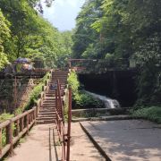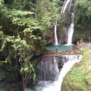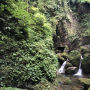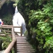 景观:真是超级棒,好多好多的瀑布,“飞流直下三千尺,疑是银河落九天。”因为经常下小雨,石头也都是湿的。山顶是雾蒙蒙的。