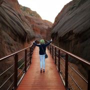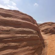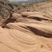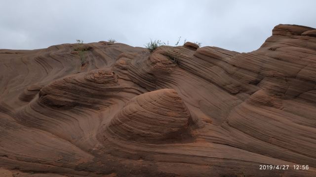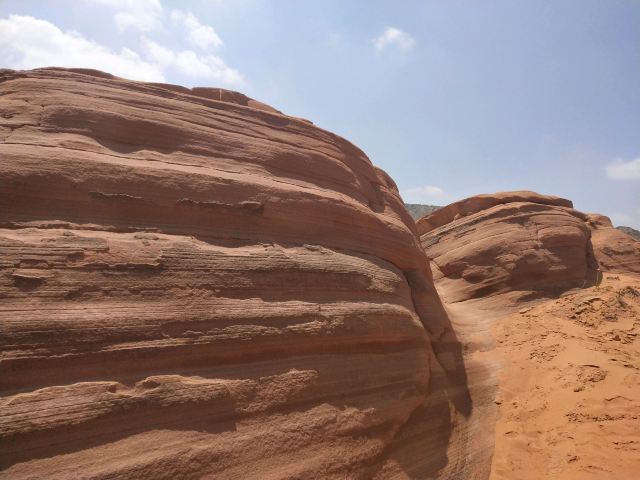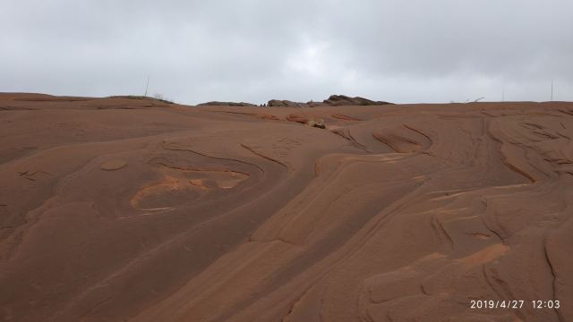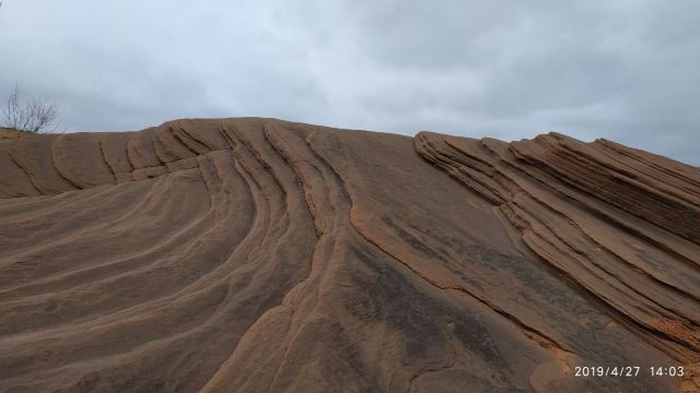 5分 超棒我们根据导航来到景区,没游客中心,只有路标指向波浪谷,继续走乡间小路来到一片围着的景区,收10元停车费,于是我们从栏栅缝进去,这里的地貌是红色,像水流痕迹,像贝壳流线型,美不胜收,可惜人们踩在上面破坏不少,还有人刻字!不过,景区已经在铺设木栈道,很快要收门票和不能再踩在石上了。