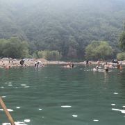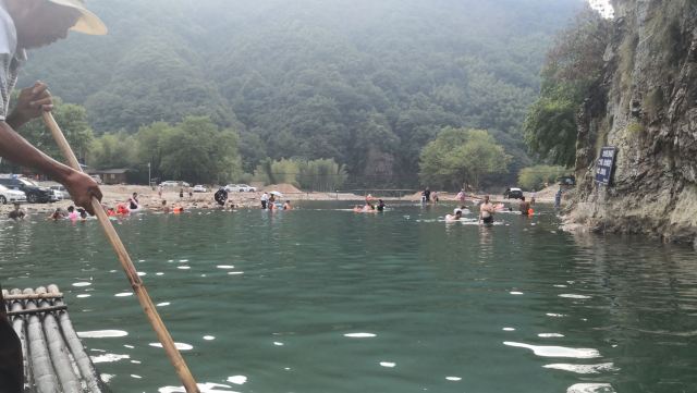 5分 超棒合肥开车3小时左右到达月亮湾景区,这里是开放式景区无需门票,我们订的民宿在月亮湾中心,吃过午饭后就去坐竹筏,全程1个小时40分钟左右,相对平缓,适合老人小孩,感受山水自然风光。沿途会遇到很多人向你拨水互相打水仗,我们两个小孩各自配备了一把长水枪,仍感觉战斗力不足,好在我们带了伞确保最大程度不被泼湿全身。