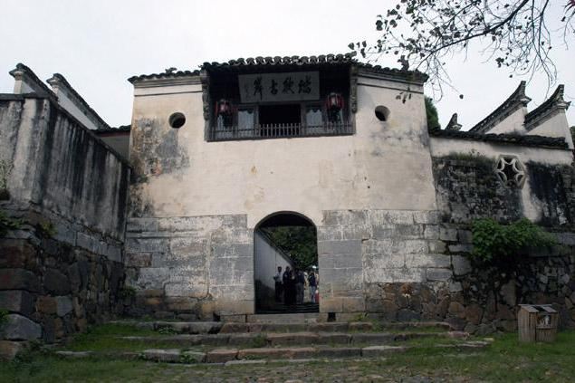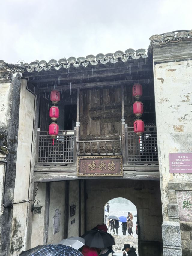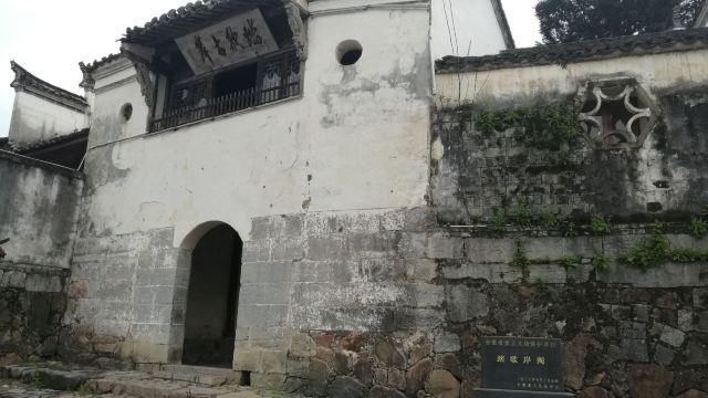 阁分两层,底层为通道,入阁门即古南阳镇正街,出阁即至渡口。楼上可凭栏俯瞰桃花潭景色,眺望对岸的万村。