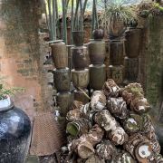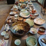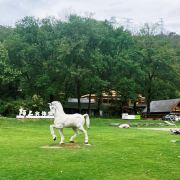 2024年11月1日我醒来,就迫不及待地拉开窗帘观看窗外的芭蕉树和“排竹”,它们一直守候在小溪旁,也为小溪里的鸭子遮风挡雨,也为站在回廊的我提供了绿荫屏障。旅游大巴在绿荫屏障的缝隙中一闪而过,仿佛要划破这三宝村的寂静,我庆幸我在“世外陶源”中,享受这将近20年前一直拥有的“静美”,这是沉淀出来的自然美,也有国内外陶瓷艺术家曾在这里创作的艺术品之美,女管家文英夫妇一直在守护这里的“自然与陶瓷艺术之美”。此时我们在这里欣赏着梁子作家的“变脸”陶瓷展,感受在时空中凝聚的韵味。