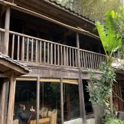 2024年10月31日我与长井去了景德镇的三宝村“世外陶源”,阔别7之久的三宝村,面貌焕然一新,我甚至都认不出来的,在雨中,街道两侧的宾馆、旅店、客栈比比皆是,让我无法再找回7年前轿车在暗淡的路灯、扬着尘土的土道行驶的情景,抬头望去那灯火辉煌的地方,希尔顿酒店也在三宝村出现了,让我无法理解带有乡土气息的三宝,如何驾驭“宝马”在灯火之中飞奔,巍峨的远山也悄然隐退了。世外陶源的女管家文英夫妇驱车带我们继续前行,终于到了“世外陶源”所在地。一切都在改变,唯有这里的木制楼阁没有改变其格调,跨过小溪上的拱形步道小桥,推开木板的院门,登上几节台阶,在小院中央的方桌上依旧有陶瓷杯碗,仿佛在等待着品茶人的到来,爬上二层阁楼的楼梯,来到我们熟悉的三面墙都有玻璃窗的卧室,推开床对面的阳台门,长长的回廊在若隐若现的红色小灯笼下,显得那样幽静。随着女管家文英清脆的声音叫我们:“吃饭了”。我才从绿荫环抱着木屋中走出来。热气腾腾农家饭菜呈现在我们眼前,那鲜嫩的江鱼、小炒肉、野菜包、鸡蛋羹等,每一道菜都不断地调动我们的口谓,那欢声笑语似乎也融入美味佳肴中,享受着一个温馨的、充满友情的夜晚。