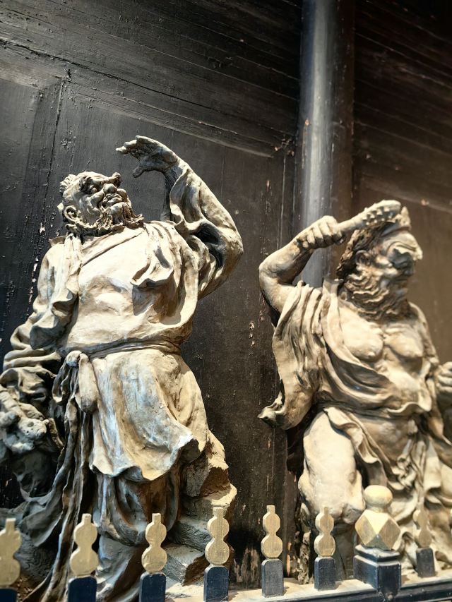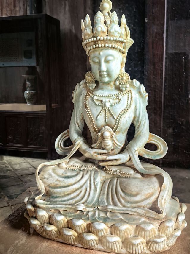 进景区大门左手边是陶瓷民俗展示区,首先看到的是清代建筑群清园,穿过瓷碑长廊,走到尽头是明代建筑群明闾。瓷碑长廊西侧的瓷音水榭(水上戏台)则可以看免费的瓷乐演奏,所用乐器都是陶瓷做的。