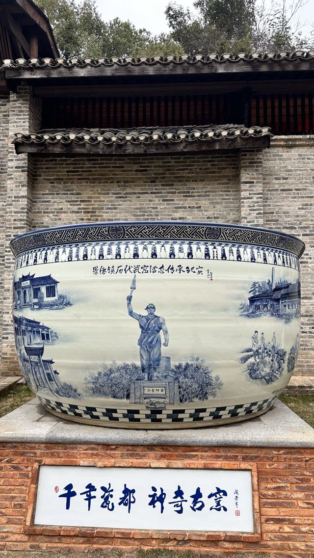 进景区大门后,各景点都有瓷制的路牌指示方向。右手边是历史古窑展示区,首先看到风火仙师庙,供奉着明代万历年间为烧窑而献身的童宾,后人尊他为窑神。往里走是一排作坊,出售精美的陶瓷工艺品,不过价钱都很贵。再往里便是这个区域的重头戏——各个时代的古窑,你可以依次看到清代镇窑、明清御窑(青窑、龙缸窑)、明代葫芦窑、元代馒头窑、宋代龙窑,花几块钱喝一碗窑工茶,和窑工师傅聊聊天,能知道很多瓷器和古窑的故事,茶还可以续杯。