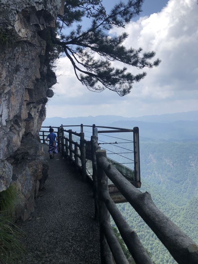 5分 超棒8月4日我在杜鹃山乘坐索道上山游玩,留下极为美好的回忆。缆车单程全长据说5公里多,行驶时间约20分钟左右,整个行驶过程非常平稳,随行的老人乘坐起来没有任何问题。坐着缆车上山的过程中,事业中是一望无际的群峰,满眼的绿色扑面而来,缆车周围几乎100%的森林覆盖率,人在其中游,整个身心特别舒服。坐缆车登顶之后,在山峰上铺设的悬空栈道也让我非常震撼。搭建在悬崖上的悬空栈道全长2800米,行走在悬空栈道上,无限风光在险峰的感受油然而生。悬空栈道上面共搭建有5个观景平台,供游客拍照留念。在悬空栈道上远眺群山,满眼是绿色,而脚底下是深邃的峡谷,这样的体验棒极了!在悬空栈道上行走过程中,两位保洁员从我身边擦肩而过,她们一手提塑料袋,一手拿着一把夹子,不停地在路上清扫垃圾。景区管理的完善度可见一斑!杜鹃山是好地方,好地方顶起!