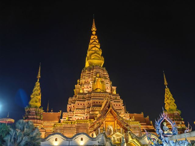 告庄西双景为傣语,汉语意为“九塔十二寨”。其中心的佛塔引人注目,一定要去观赏一番。在告庄西双景游玩,不必太匆忙,可以租一个自行车慢慢骑行闲逛。白天去看看澜沧江,然后去佛塔感受下佛教文化,十分惬意。晚上可以去夜市“寻宝”,吃点当地特色的热带水果,买点工艺品,或者去酒吧和朋友小酌几杯,聊聊人生理想,很是悠闲自在。
