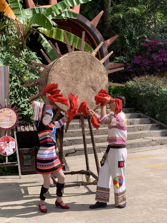 基诺族“舅舅最大”,这是有典故的,你参观时导游会详细介绍。基诺人称呼男人为“迷惑”、称呼女人为“诱惑”。基诺大鼓是不能随便敲的,男的只能敲9下、女的只能敲7下,表示吉祥。据说基诺族首领当时有生杀大权,解放后权利上收了。现场可以参观基诺女神像、看演出、参观基诺民居、基诺女人现场织布演示、免费品尝基诺饭菜、喝基诺茶、吃水果。160元的票价应该不虚此行。
