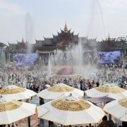 西双版纳傣家人隆重的节日莫过于泼水节,在西双版纳傣族园的,你可以感受到这热烈的场面。这里“天天都是泼水节”,上百人聚拢在水池边,相互泼水,洗去尘埃和罪孽。记得一定要带一套替换的衣服。
