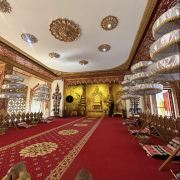 曼听御花园是傣族文化的集中展示地。傣王行宫气势恢宏,红色与金色的主色调,三角形的金色宫顶,屋檐、屋角以凤凰、孔雀等吉祥物装饰,行宫内金碧辉煌的金水漏印画,让人感受到傣王室的奢华。城心塔作为典型的傣王室建筑,绘满“金水”彩画,金色屋顶光彩夺目,承载着傣族人民的信仰。此外,总佛寺庄严肃穆,寺内金碧辉煌,是感受佛教文化的好去处。