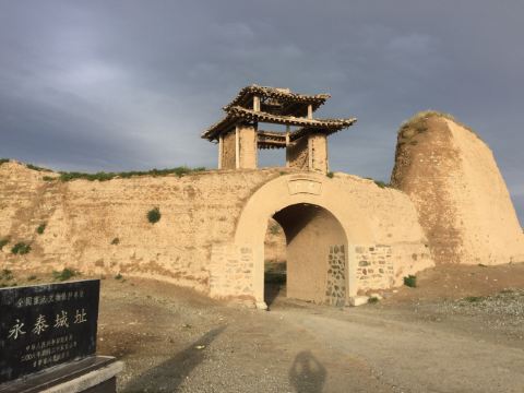 坐落于白银市景泰县寺滩乡的永泰古城,是全国文物保护单位。因其古堡形似金龟,故又名永泰龟城。古城建于明万历三十六年,整个城平面呈椭圆形,四面筑有半月形城,城门向南开,门稍偏西,形似乌龟。城周有护城河,是一道完备的军事屏障和防御工事,在明清两代具有重要的战略地位。永泰古城从建成至今,经历了四百多年的沧桑,岳镇邦、岳升龙、岳钟琪祖孙三代对古城的影响,使之名声远扬。《美丽的大脚》《雪花那个飘》等影视剧片在这里拍摄。
