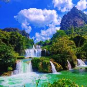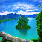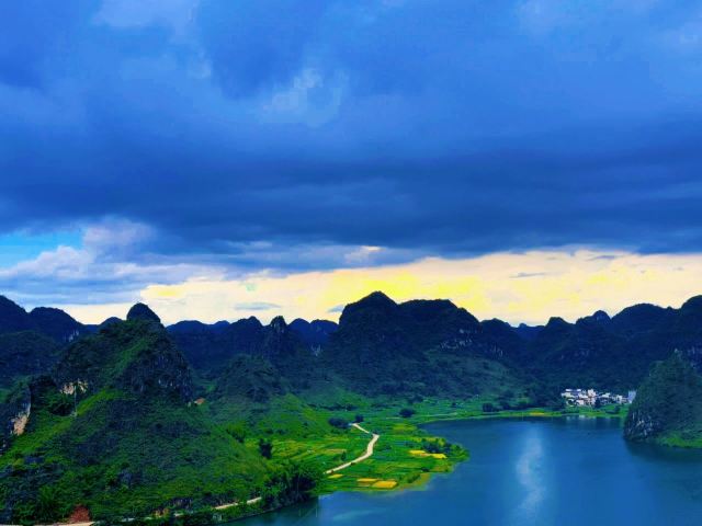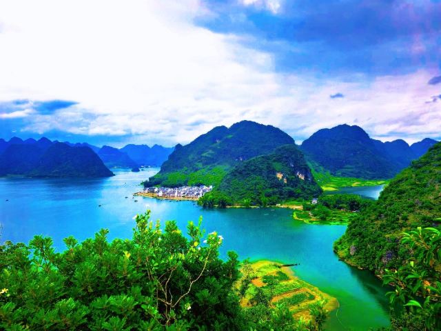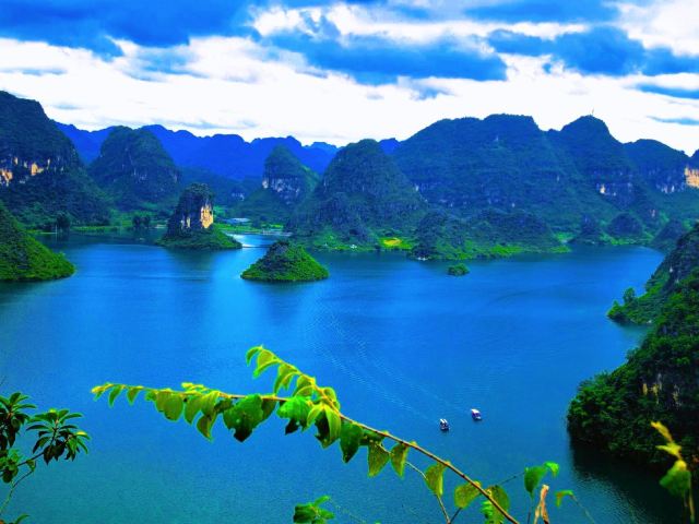 渠洋湖是一个大型的喀斯特高原湖泊水库。位于靖西县城西北方向28公里处,总面积为2469.9公顷(24.699平方公里,或37048.5亩),总库容量为9200万立方米,其中湖面面积为15540亩(10.36平方公里,或1036公顷),湖长为15公里,宽处有1公里,是百色市的第二大人工湖。水质优良,有大小岛屿十多个,沿岸有海拔一千多米的岜行山,以及掩映在绿树翠竹当中的几百个壮族干栏式村寨。
