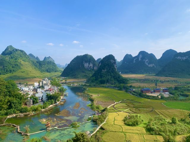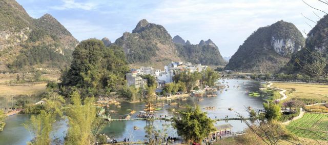 这里是神仙打翻调色盘的地方一春水初生时翡翠沁心,夏日雨霁后云纱绕峰,秋风起时稻浪染金,冬雾漫过处如坠幻境。喀斯特地貌与田园牧歌的绝妙合奏,让每个快门都收录了诗行。