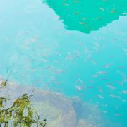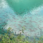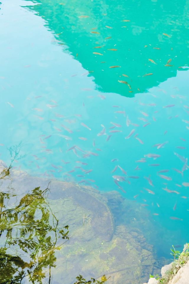 这里是德天大瀑布的源头。地下水深达 30 多米,到处游动着的罗非鱼,不经感叹大自然的鬼斧神工!