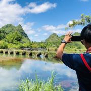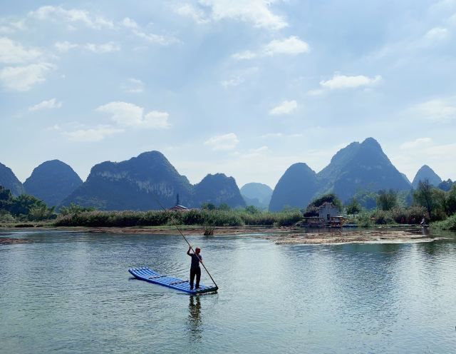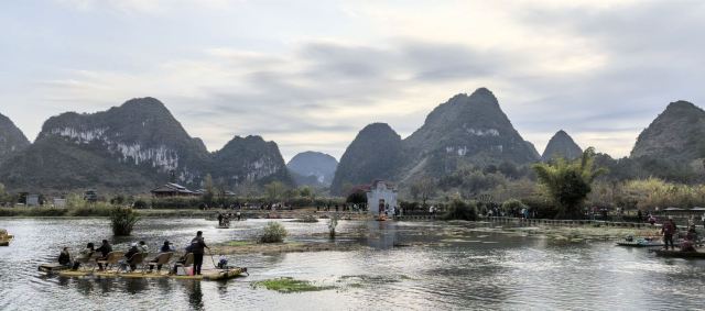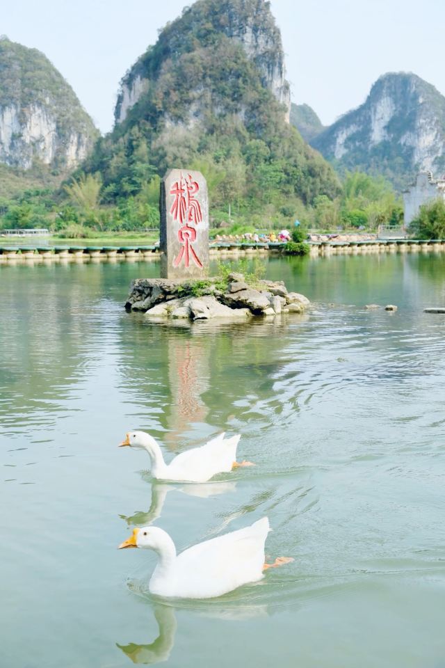 风景太多,哪哪都想来一张,鹅泉距离市中心只有 6 公里,听划船鹅大姐说,全村也就 800 人,有开民宿、开饭馆的,还有像她这样开竹筏船的,当然也有外出务工的,当然还有在田里干活的!生动展示了一个村落村民的旅游转型
