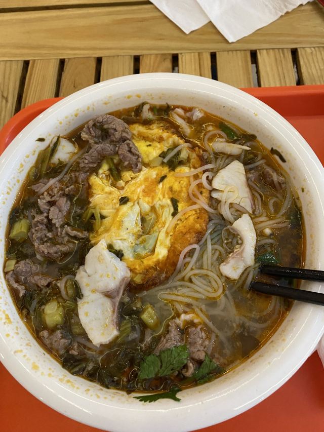 5分 超棒七月二十一日,在大新桃源路京东家电对面,吃上了我认为挺赞的米粉~酸鱼粉➕牛肉(我还加了个煎蛋),店名好像叫“桂冰米粉店”,真的很不错👌。自己做好的攻略是从大新客运站坐大巴去靖西的,但在大新客运站询问了一个戴眼镜的小妹(客运站人员,很热情,很好),彻底颠覆了做好的攻略,因为大新没有去靖西的车。只有大新去德保,再从德保转车去靖西,于是又增加了一天和四个多小时的车程,好在能同站换乘且直接上靖西的车,车上购票,减少了复杂的过程。接下来就是去靖西鹅泉景区游览了。从靖西县城,直接叫网约车(这点比大新好,叫车还是方便的),半小时后到达鹅泉,车费在20元左右。回程相同,在鹅泉的新桥下村口,直接呼叫网约车即可。至于鹅泉的景色,我想与其是用文字,不如直接放图,好坏自有答案(我觉得这就是一个极不起眼的小村落,但却是我心中的世外桃源)。最后的米粉就是我上面说的桃园路京东家电对面的那家。