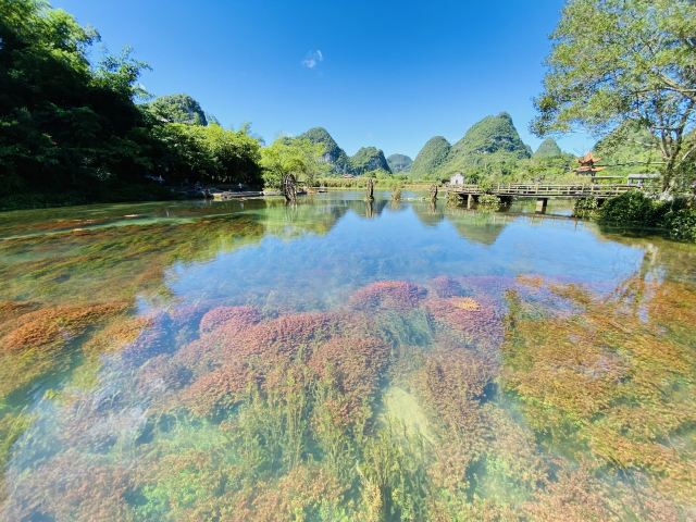 - [4小时前] YoYo** 发表了百色资讯 鹅泉水绿得像融化的绿宝石,鱼群从脚边游过,竹筏荡开波纹到天边,像闯进水墨画里#鹅泉景区 #治愈系风景