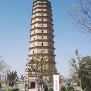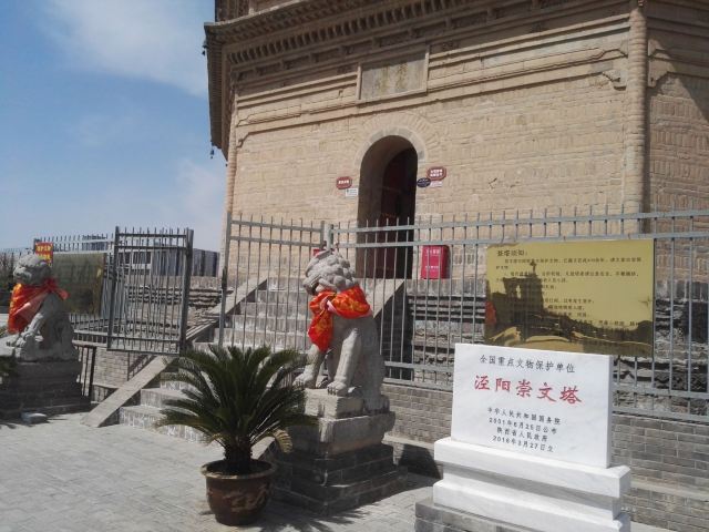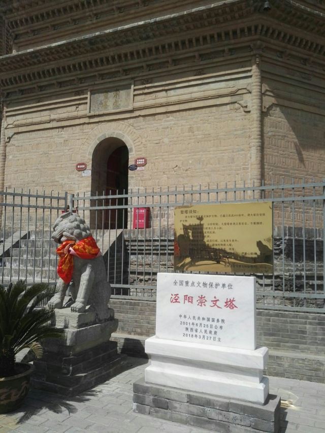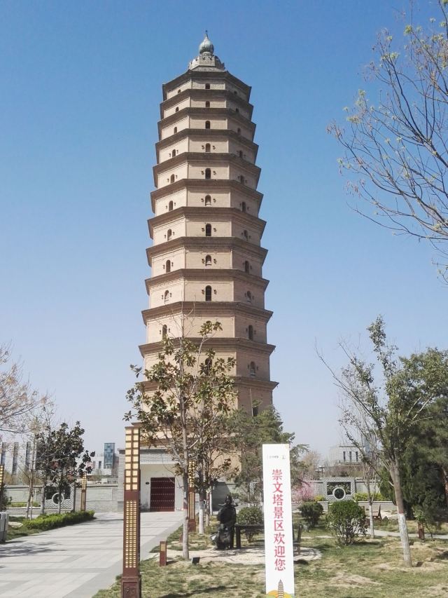 崇文塔位于泾阳县城东南10公里崇文中学内,泾河北岸,为省级重点文物保护单位。据崇文塔寺的碑文记载,崇文塔为倡导泾阳、三原、高陵三县学童努力向学而建,始建于明万历十九年(1591年),耗时19年建成,修塔人为明刑部尚书、泾阳县人李世达。