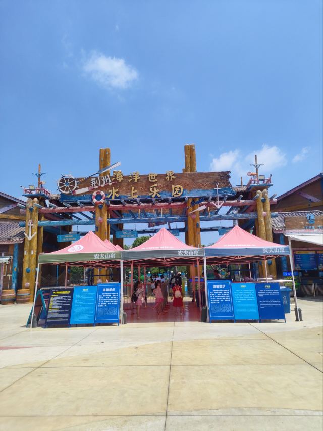 荆州海洋世界水上乐园以海洋风情、海盗元素为主题,安装有10多项水上游乐设施,如超级造浪池、大喇叭滑梯、激情水寨、冲天回璇等。