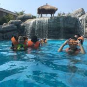 4分 满意带孩子去的,说实话,体验一般。直接吐槽吧,一、项目设计不合理,很多对身高和体重有要求,1.35的孩子想玩的玩不了,能玩的很多都是幼儿级别的,又不想玩,一下午基本就泡在海啸池里。二、买票进园后,用储物箱是要交20元的;里面的一个漂流项目,用皮艇是要另外收费的。郑州方特的水上乐园也去过,这些都是包含在门票内的,价格你定,但是相应的服务要到位啊