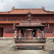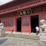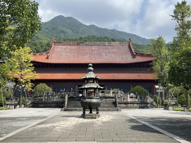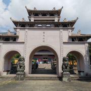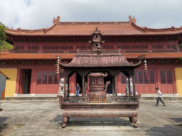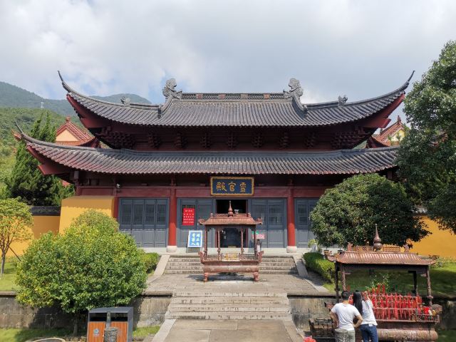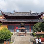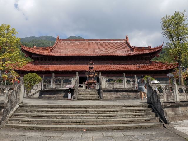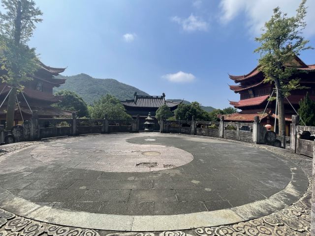 5分 超棒巍峨的黄大仙祖宫坐落在双龙国家风景区内居鹿田湖畔,披皇岭仙境,占地7.9公顷,宫殿建筑群占地1.8公顷,海拔562.8米,进深716米,七进阶祖庭由19处宫楼、阁、台组成。宫境深邃,成了中国之最。它三拔头筹,一是道院大,占地79999平方米;二是宫殿大,栖主神的赤松宫,三清宫都是占地1000平方米,屋高20米上下的重楼高阁。这在中国道教史上是空前的;三是殿内陈设件和法器大,7.2米长的雕花香案,直径1.5米重3吨的铜钟,还有铜香炉,铁宝鼎,大木鼓都会让你大饱眼福。在黄大仙祖宫的赤松宫与灵宫殿之间有一个祭坛,直径18米,占地255平方米。当你站在祭坛阴阳界处自说,或者你和朋友分别站在阴阳鱼眼处对说,都有强烈的回音和鸣。似空谷传声,人会发生聆听天音的意象,遂命名为天音祭坛。据浙江大学的一位学者慕名前来考察后认为回音效果比北京天坛回音壁好得多。真是“不是天坛,胜似天坛”。
