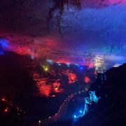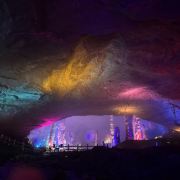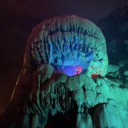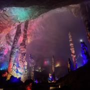 九龙洞是一处大型天然喀斯特溶洞,全长2284米,洞内分为7个大厅,已开放4个主厅和1个天厅。洞中石柱、石笋、石幔密布,形成“双猴迎宾”“九龙抱柱”“倒挂莲花”等40余处经典景观。其中,“天下第一柱”高达44.71米,直径16.4米,气势恢宏。洞内还藏有一条地下暗河,流水潺潺,与钟乳石交相辉映,更添神秘色彩。