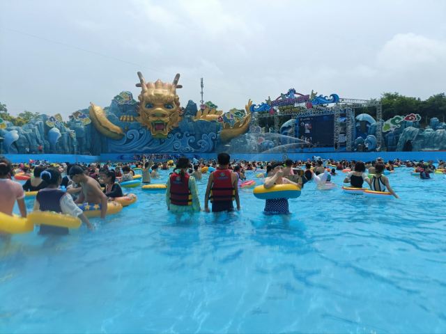 5分 超棒进门翻包,让人很反感,可以带水,不可以带饮料。建议玩水装备都带齐全,里面的很贵,手机防水袋要29.39。租一个普通的游泳圈25元不限时。自己带圈的话打气还要5块,大的要10块。沙滩鞋很必要,有的区域拖鞋也不让穿,但是沙滩鞋可以。租一个更衣箱20元,还要交200押金,箱子还可以,我们一个大双肩包,一个小双肩包都放下了,一家三口租了一个,所有换下的衣物都放得下。吃饭的话还可以,不是很贵,能接受,米线18,份饭一荤三素22,但份饭只够我10岁的女儿吃,如果我和我老公指定是吃不饱。饭太少,想再单独买一份米饭还不卖,太不人性化了。这要是一个大小伙子两份可能都不能够。园区还算够大,很新,景色很好,玩的也多。什么年龄段的大人孩子都能找到适合自己的区域,但是,像我和我老公这样身体不太好,胆子又小的就不是很友好,能玩的太刺激不敢玩,敢玩的不让玩,说是怕给压坏了😂,硬件设施真的很好,到处都是卫生间,你不用担心错过眼前的,走到哪都有,很方便。漂流会提供免费的双人泳圈,正好解决了我们没带游泳圈的问题。服务员这帮小伙子们都挺好的,尽职尽责,但有一点让人不满意的就是,在后边没有人排队的情况下,我老公滑滑梯呛了水,一时懵在滑梯上,工作人员滑梯上边的和水里的,一直在吹哨子,很急促,很刺耳,如果说,有人在排队等着滑滑梯,我完全可以接受,但是,根本就没有人,工作人员就是闲置状态,根本没必要去催促滑梯下面的人吧,我想我老公不用一分钟就会调整好,就会离开滑道了,他们那么一吹,整的我在旁边心脏都不舒服了。整体来说游玩体验很好。可以忽略那些小小的不足,133的门票比热高便宜一半,但是热高人太多,不喜欢下饺子的感觉,性价比可以,推荐去。