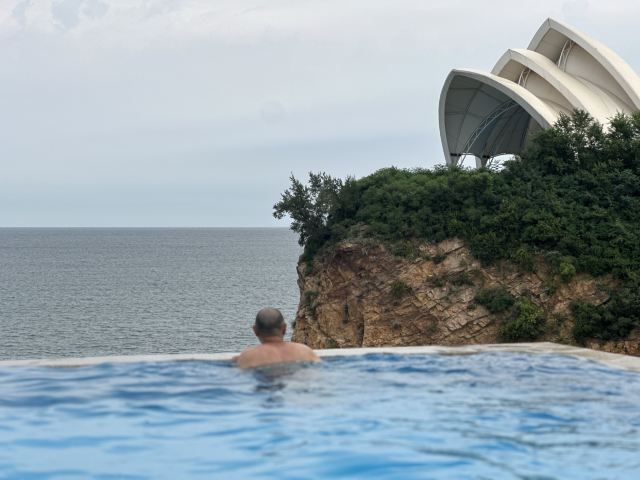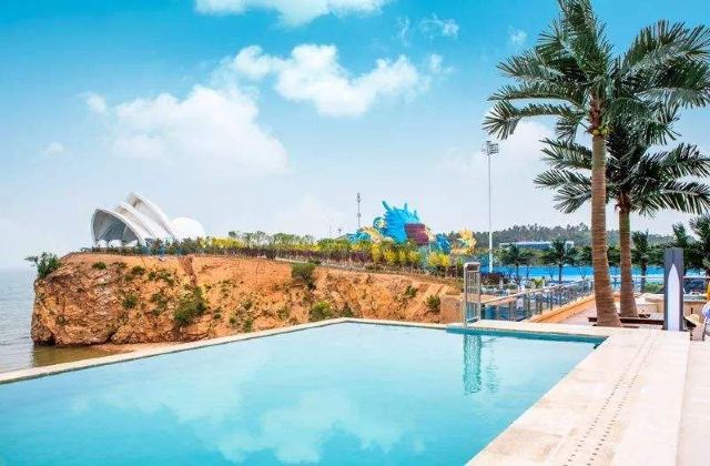 5分 超棒景色非常美,在海边,有海边沙滩🏖️、海边悬壁餐厅,有各种水上娱乐设施,有大型人工造浪池,非常欢快,有美人鱼表演,还有天路温泉♨️,可以在这里度过浪漫的一天有趣好玩,值得推荐,体验很好,景色不错,