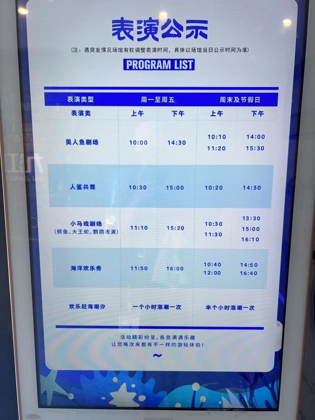 5分 超棒真的没有想到九江也会有海底世界,对于没有见过海底生物的孩子们来说,一切那么新奇。在场馆里面跑来跑去,从孩子们的面部表情就知道他们很开心。我是五一最后一天来的,人不是很多,据说前几天排队都要排2个小时。所以错峰出游才是最正确的选择。门票价格儿童70成人118(这个价格不低啊。随便几百块就没有了)携程等网上平台有优惠。果断线上订票,但是线上要提前2小时。所以大家注意一下,不要耽误自己的行程。缺点:刚装修好有点气味。演出时间短了一点,美人鱼演出和鳄鱼演出没有座位。要站着看。海洋生物不是很多。萌宠乐园下雨天有些泥巴。总体来说还行。如果门票价格再低一点就更好了。现在都是二胎三胎的,好几百就没有了。