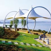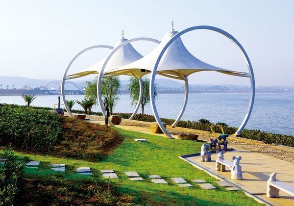 八里湖公园位于八里湖新区,内设护岸固坡、公共服务区、亲水平台、广场,还有游船码头及风帆雕塑等,将热带风光、海滨特色充分体现。