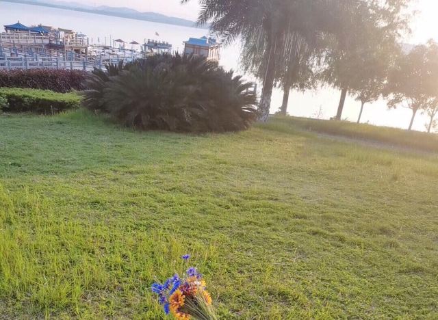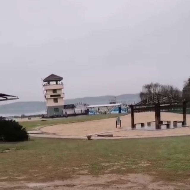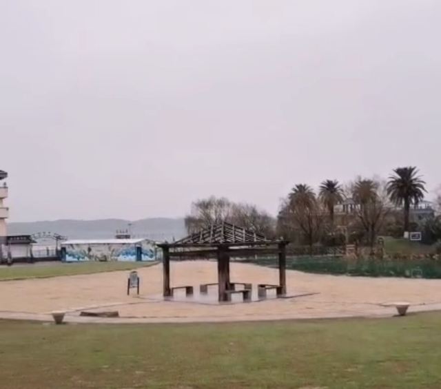 3分 不错沙滩一般般,倒是旁边这些棕榈树让我们有了度假的感觉。 这里很适合夏日休闲,嘉年华游乐区域,餐饮店铺,甚至还有一个婚庆礼堂,难怪这里也叫婚庆公园。走在亲水岸边,将湖水想象成海水。幸而是湖边,不然阴郁天的海风一定更强劲。湖中的建筑貌似适合远看,因为走进发现比较粗糙。