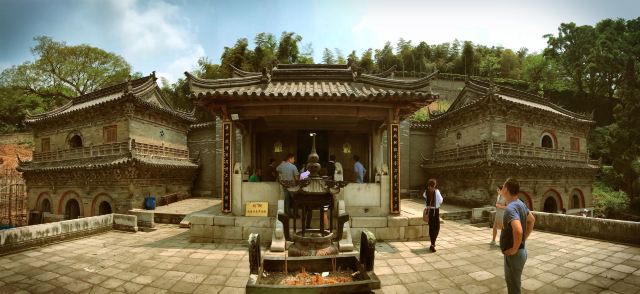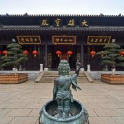 隆昌寺位于距南京、镇江、句容都约30公里的宝华山上,是山上主要的景点。寺庙始建于南朝梁天监元年(公元502年),开山祖师为济公的原型宝志和尚,曾经规模极大,有999间半之称,现仍有500多间屋子。隆昌寺的源于它的三坛大戒,是目前国内大的传戒道场,僧人取得隆昌寺的戒牒相当于获得北大、清华的毕业证书,寺庙所在的宝华山也因此获得了“律宗第一名山”的美誉。宝华山的盘山公路直抵隆昌寺大门,到隆昌寺好自驾,车辆开进景区在购买门票的同时还需购买停车票,小型车(15座以下)10元/辆,大型车15元/辆。非自驾的游客可以乘坐景区内的游览车,单程10元,或者步行上隆昌寺,从山脚爬上来约30-40分钟。隆昌寺大门朝北,一座座马头墙相连,具有徽派建筑风格,门口两棵古银杏枝叶参天,戒公池内立着观音塑像。隆昌寺的布局与其他寺庙不同,主体建筑不沿中轴线排布,这也和它是传戒道场有关。在寺庙里可以看见“和尚尼姑住一块”,有点像学校里的男班、女班。由大门进右手转弯的四合院内,主体建筑围绕一圈,南边是内部有一幅幅彩塑壁画的大悲楼(韦陀殿);北边是大雄宝殿;大雄宝殿旁边有法堂(方丈室),据说乾隆南巡到此曾坐过室内的方丈桌椅;东西寮房为僧房,可以进去参观,像大学宿舍。由大门进左手转弯,有两个看点。一是东侧房间里的五口千人大锅,清光绪年间建造,大的一口口径2米,深1米,可以遥想寺院鼎盛时千众僧人一起吃饭的壮观场景。二是北侧房间里的汉白玉戒台,也是整个寺庙精华的部分,清康熙年间建造,四周雕刻精美,自清代以来,有数以十万计的僧众在这上面受戒。后走青石板台阶路,经过曲折的石砌巷子,到山坡上的铜殿和无梁殿,这是隆昌寺的第三个看点。铜殿居中,建于明万历三十三年(公元1605年),两座与铜殿建于同一年的无梁殿分立两侧,全部用青砖砌成,无梁无柱,建筑构建上都有漂亮的花纹。站在这里回望寺庙,马头墙与屋顶鳞次栉比,拍照角度不错。每年10月,一般来说大致在10月8日-10月18日,隆昌寺举行三坛大戒,既受男众,又受女众,游客可以观摩,但需尊重佛教礼仪,勿大声喧哗、指指点点。寺庙门口的宝月斋有素斋吃,素面很好吃,参考价20元。