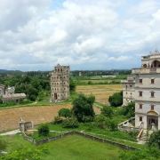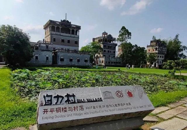 开平碉楼与村落,位于江门市开平市塘口镇自力村,于2007年入选世界文化遗产,有三门里村落迎龙楼、自力村村落与方氏灯楼、马降龙村落群、锦江里村落等地。一望无际的稻田、十里飘香的油菜花海、苍翠欲滴的竹林等造就了当地优美的风景。