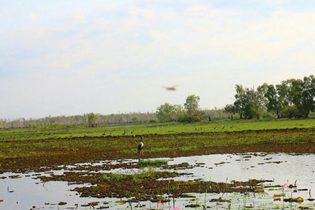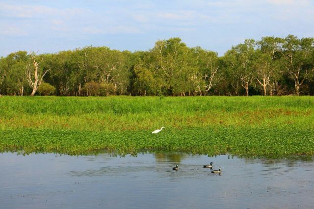 游船拨弄水草前进,蔚蓝的天倒映在清澈的河面上,沿途你可欣赏生长在水中的树木及绽放的花朵,聆听各种虫鸣鸟叫,还能不时地见到鳄鱼、澳大利亚肺鱼等从船侧经过,运气好的话更能目睹鹊雁、澳大利亚鹤、鹳、白腹海雕等不常见的鸟类。