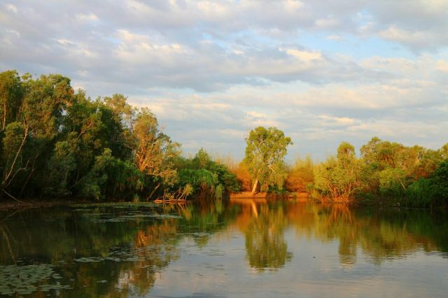 黄水河游船的出发地位于科因达(Cooinda)的Gagudju Lodge酒店,购票后乘坐穿梭巴士至搭船点。你可以预约1.5小时或2小时的游船行程,在旱季每天有6各班次,清晨的2小时游船可以领略到黄水河破晓的独特风光,这时鸟类比较活跃,光线很好。傍晚前的末班也值得推荐,从白天过度到黄昏的美景一定会让你难以忘怀。