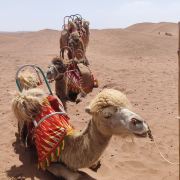 红沙漠红沙河景区位于柯坪县东南部,面积数十平方公里。“红层”的红色砂岩风化成沙粒,集聚成片则成为红色沙漠,属于丹霞地貌。