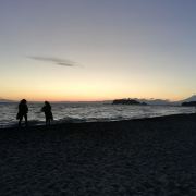 湘南海岸的沙滩是黑色的,夕阳下的海岸线很美,是情侣约会的好去处,也是冲浪者的天堂。这里是日本知名动漫《灌篮高手》中流川枫上学的路,也是许多海边场景的取景地。