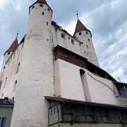 图恩城堡位于图恩湖西北角的阿勒河畔,由柴林根公爵建于12世纪末,当时是一座纯粹的办公城堡。15世纪,伯尔尼人对这座引人注目的建筑物进行了扩建,使其拥有了壮观的屋顶。