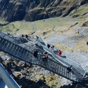 这是一条建在半山腰的步道,有的地方是悬空的,有的地方是玻璃道,沿途可以欣赏雪山美景,惊险而富有乐趣。