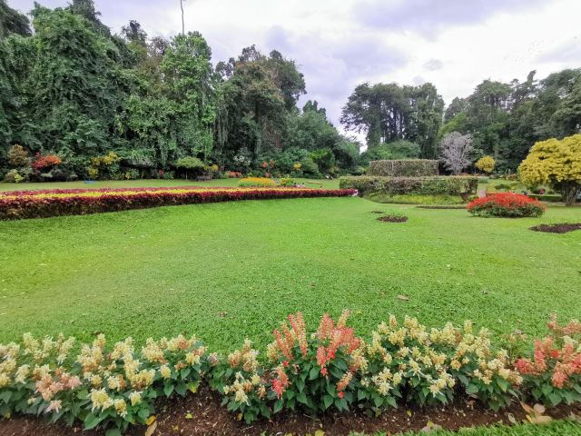 植物园占地60公顷,树木参天,优雅幽深,百花盛开,芬芳馥郁,东、西、北三面为马哈维利河所环绕,如果有几个湖泊,景色会更加秀丽。