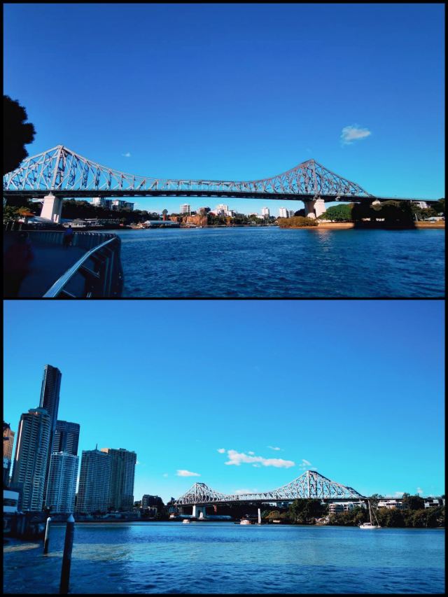 5分 超棒游玩“故事桥”,比我想像的要好得多,我并没有住在布里斯班,而是住在黄金海岸的冲浪者天堂这边,坐有轨电车glkn坐11站到Helensvale station下车再转火车vlbd坐10站(坐快车10站)到Central station下车,就是布里斯班市中心,我的车费单程8.75刀,我用的是go card,坐有轨电车上车前在车站的机器上刷卡,而不是上车后刷卡,下车也要在车站站台的机器上刷卡,车上没有刷卡机,转火车站时在进站的旋转闸门那里刷,刷好了门自动开。市中心下车后也可以坐当地公交车或免费汽车,但是我们选择了步行,因为我们自已自由行,更想走走,边走边看风景,也不算远,市中心到故事桥20分钟左右,真的没让我失望,这桥比较壮观,而且在这边可以一览市中心的风景,走路到故事桥有观景台,也可顺着河边走,河中不停看到开过来的游船,而走到桥下有电梯直达到桥上,桥的两旁有栈道,可以在上边走走,景色很美。真的来值了,如果你不参加什么攀登桥的活动,来这一切免费。桥边还有餐厅酒吧,饿了可以买些吃的。要不是下雨还可以玩的更开心。