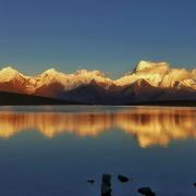 贡嘎山海拔约7600米,是大雪山的主峰。贡嘎主峰周围林立着多座海拔五六千米的冰峰,形成了群峰簇拥、雪山相接的宏伟景象。贡嘎山区内有10多个高原湖泊,有木格措、五须海、仁宗海、巴旺海等,有的在冰川脚下,有的在森林环抱之中,湖水清澈透明,保持着原始、秀丽的自然风貌,更有塔公寺、贡嘎寺等藏传佛寺。