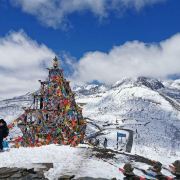 贡嘎山位于康定城南约55千米处,“贡嘎”为藏语“雪白”之意。贡嘎山险峻挺拔,峰顶平台终年积雪覆盖,闪耀着熠熠光芒,瑰丽壮观,是国内媲美冰岛的小众美景。
